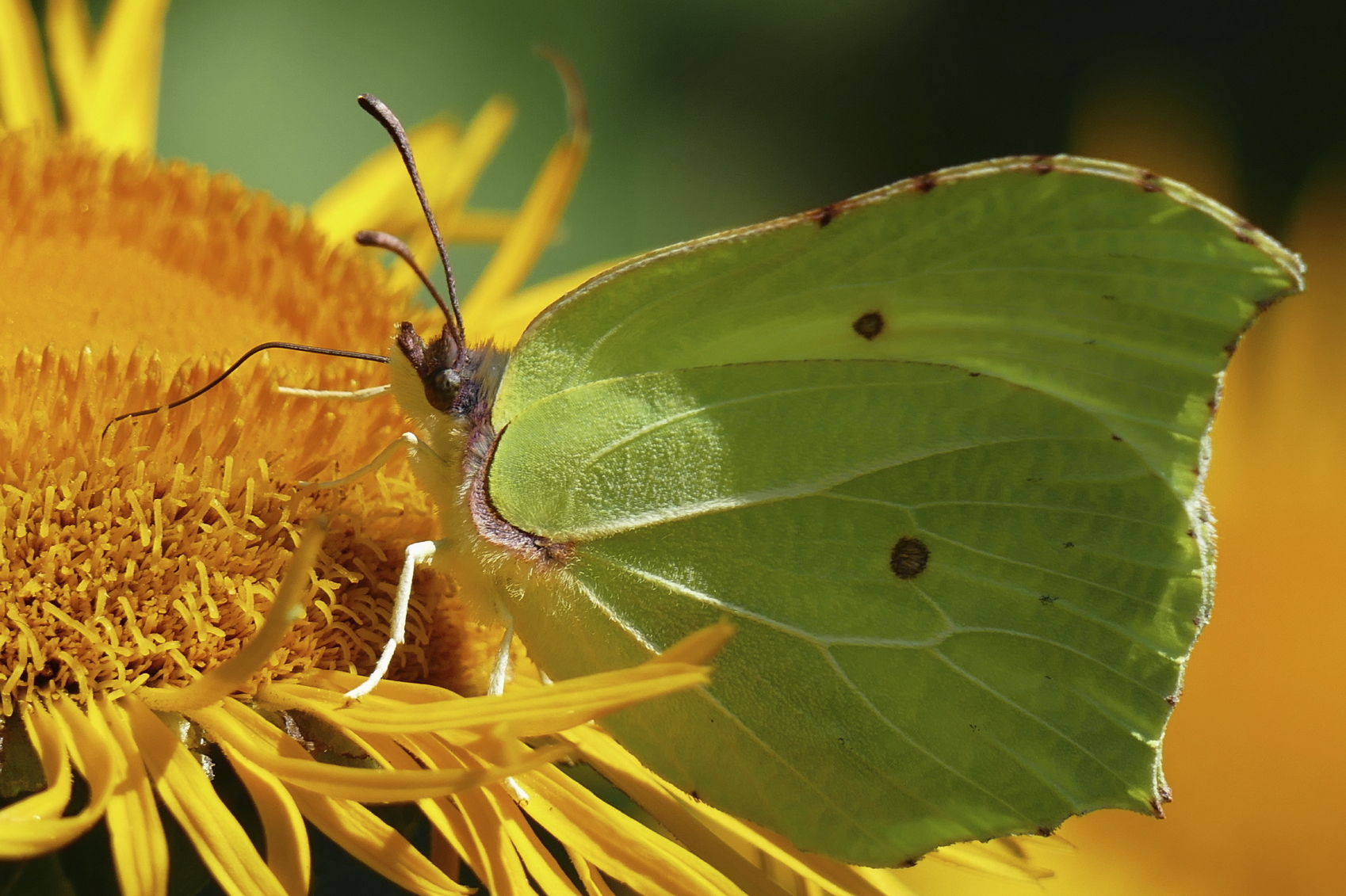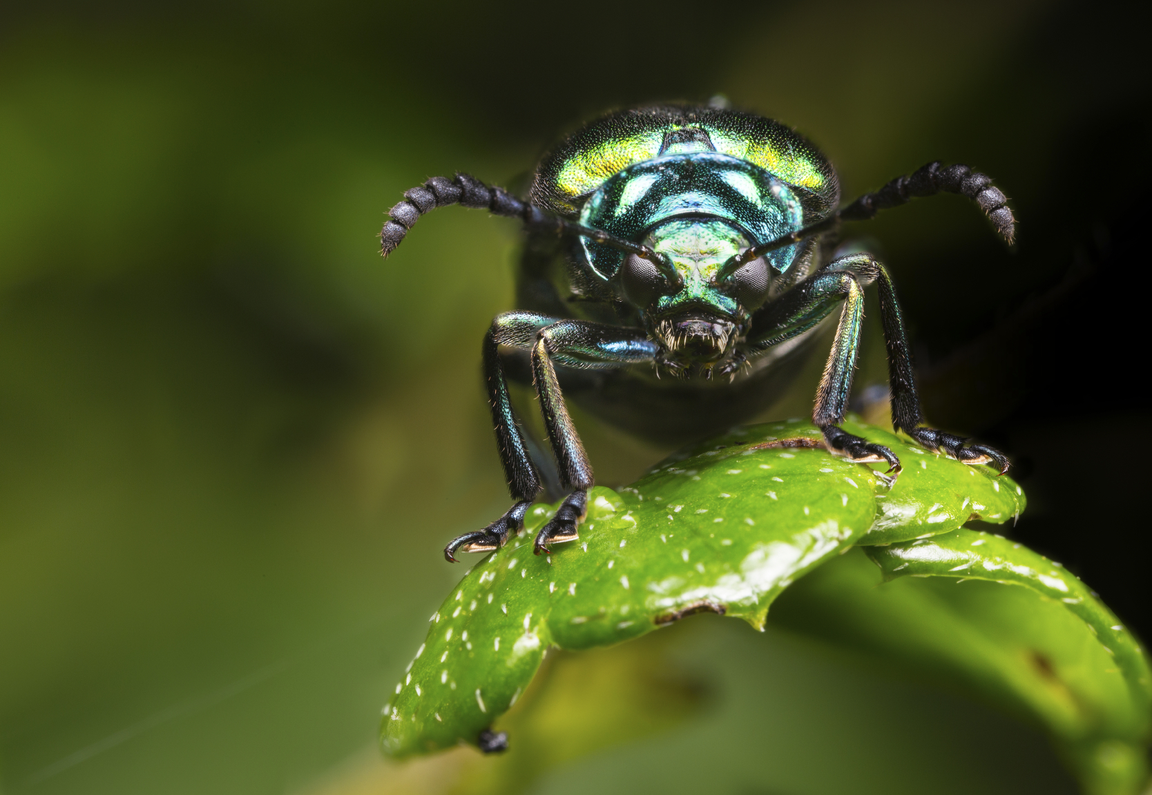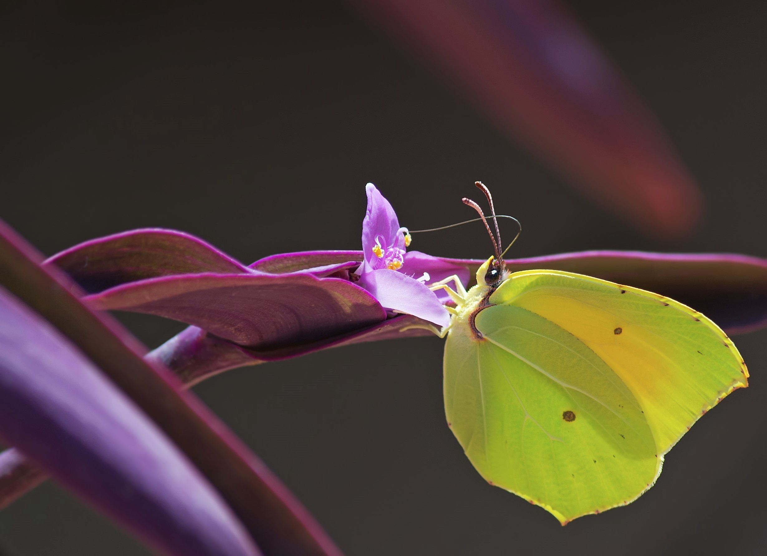 Blue morpho butterfly (Morpho peleides) on a tropical plant flower. Image taken in Costa Rica