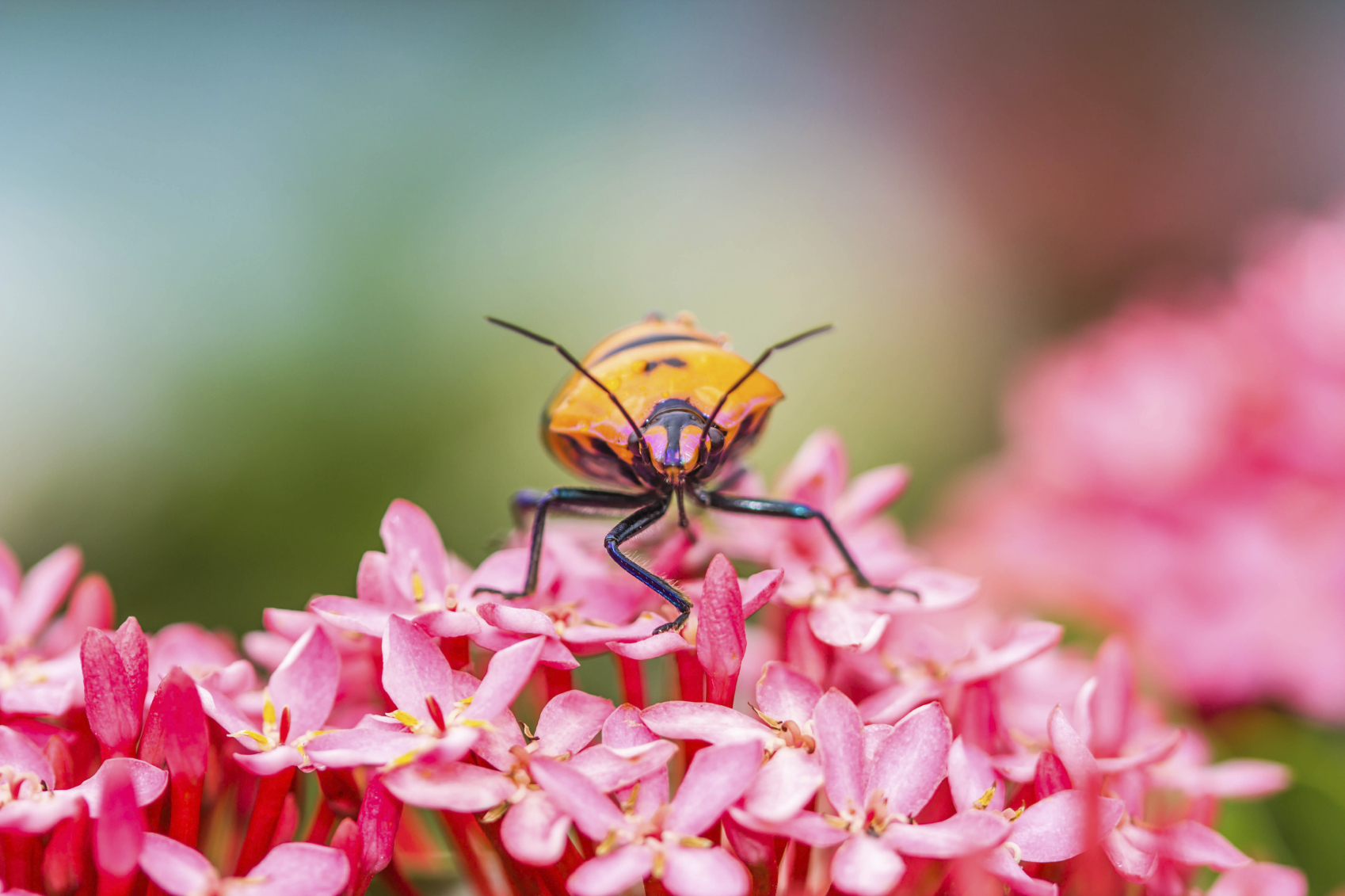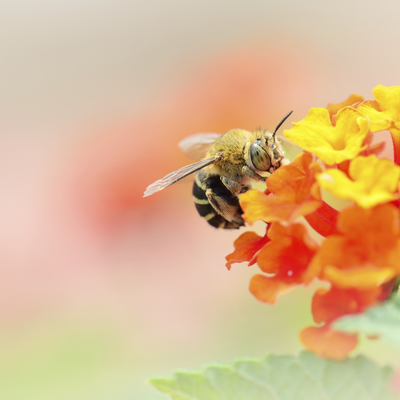 Closeup of a bee on Lantana Flowers,Very shallow DOF.