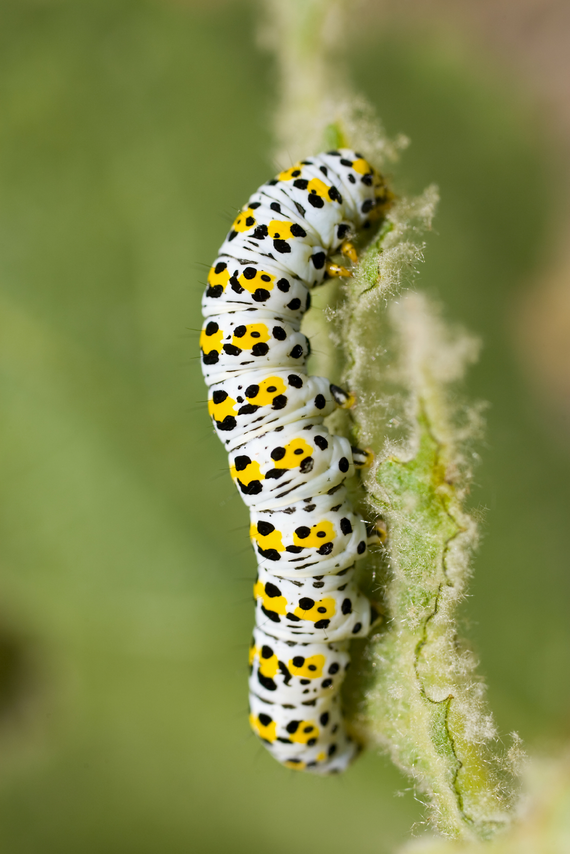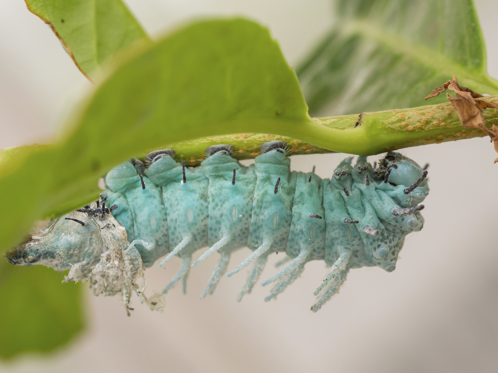Diloba caeruleocephala, Figure of Eight moth caterpillar chews on a leaf